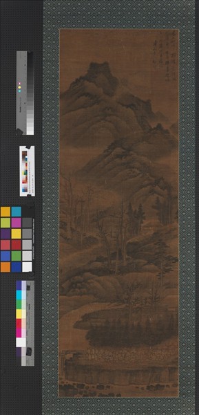 龔賢(1619-1689),字半千,號半畝,江蘇崑山人。性孤僻,與人落落難合。工詩文、行草。作山水從董源築基,一變古法,用墨濃厚,自開生面,與樊圻、高岑、鄒喆、吳宏、葉欣、胡慥、謝蓀為金陵八家。 此幅畫春雨過後,雲影瀰漫山際,前景溪岸水流潺潺,遠方村塢掩映於叢樹之間,整體空間結構平穩,深富靜謐和諧的情韻。畫幅上有作者題詩云:「春山如沐雨新晴。處處溪流解凍聲。多少樓臺迎曉日。白頭齊照萬花明。」 傅申先生捐贈於民國98年。(20110204)