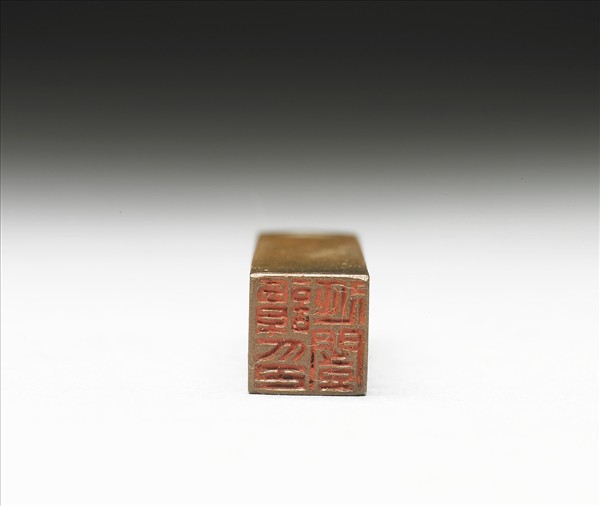銅章。長方體,印面正方。印面鑄四篆字陰文:「譚延闓印」。瓦鈕,狀似一瓦片置於印上。此印與另一印文為「祖安」的銅印(贈銅20)為對章,同儲於一牛角印盒。