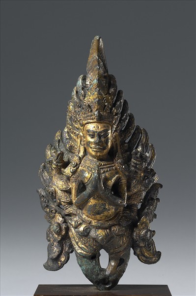 泰國 14世紀 青銅鎏金 抬轎杆頭飾具金翅鳥人