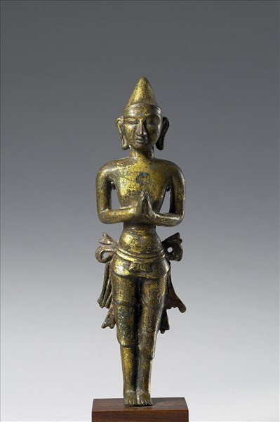 泰國 17世紀 青銅鎏金 供養人合掌立像