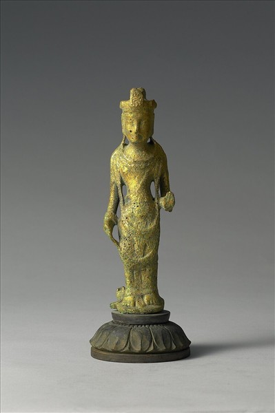 日本 白鳳時代 銅鎏金 菩薩立像