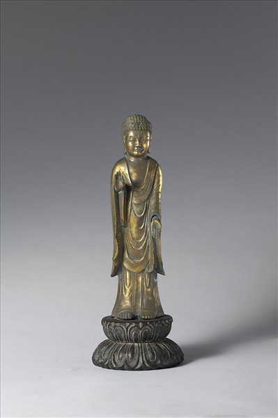 日本 藤原時代 銅鎏金 阿彌陀佛立像
