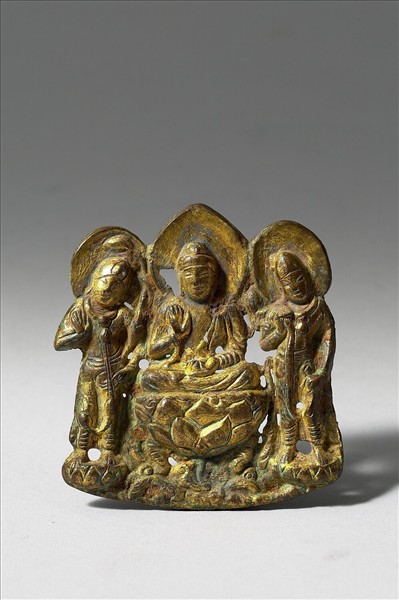 日本 10-12世紀 銅鎏金 釋迦三尊像