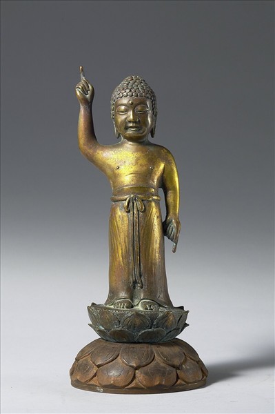 日本 南北朝時代 銅鎏金 誕生佛立像