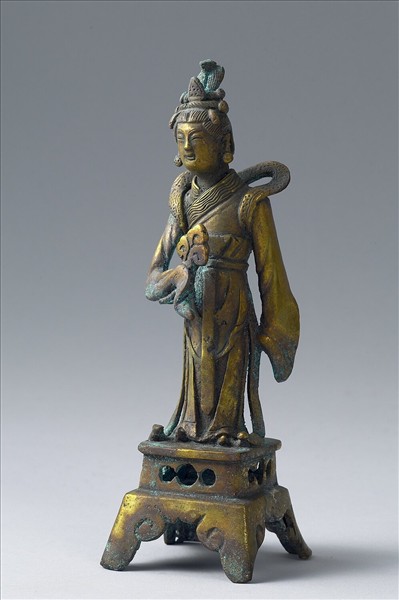 銅鎏金仕女立像