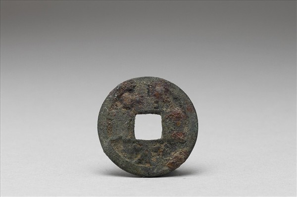 方孔圓錢,正面有楷書:「開元通寶」四字,漫漶不清,背面無文。