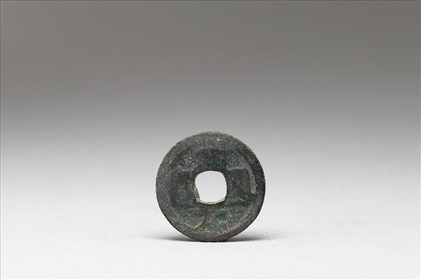 方孔圓錢,正面有楷書:「開元通寶」四字,漫漶不清,背面無文。
