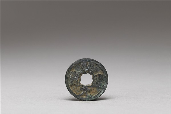 方孔圓錢,正面有楷書:「開元通寶」四字,背面無文。