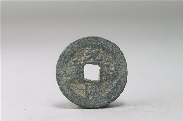 方孔圓錢,正面有行書:「元祐通寶」四字,背面無文。