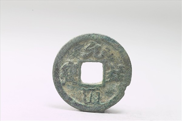 方孔圓錢,正面有行書:「元祐通寶」四字,背面無文。