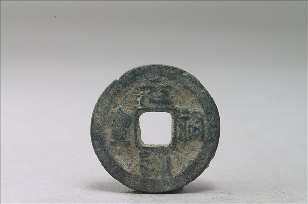 方孔圓錢,正面有篆書:「元祐通寶」四字,背面無文。
