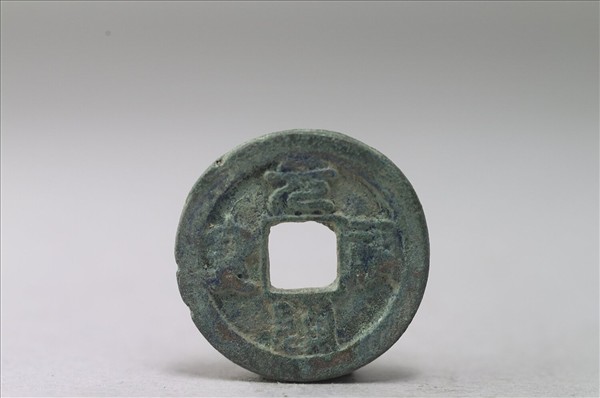 方孔圓錢,正面有篆書:「元祐通寶」四字,背面無文。