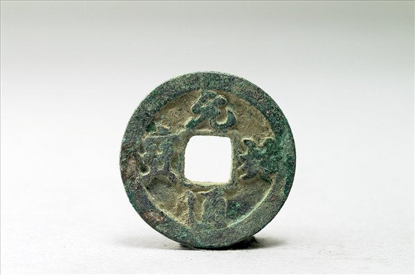 方孔圓錢,正面有行書:「元祐通寶」四字,背面無文。