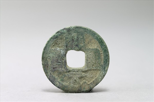 方孔圓錢,正面有楷書:「開元通寶」四字,漫漶不清,背面無文。
