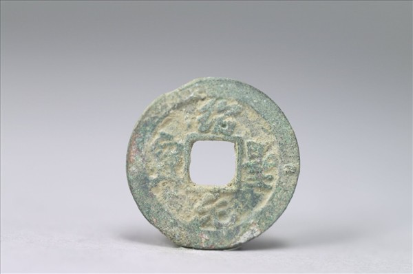 銅質。方孔圓錢,正面有楷書:「紹聖元寶」四字,背面無文。