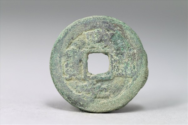 方孔圓錢。「政和通寶」有篆、隸、楷三種字體,又有銅、鐵兩種材質。此枚銅錢正面有楷書「政和通寶」四字,漫漶不清,背面無文。