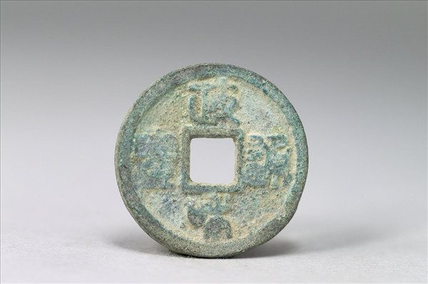 銅質。方孔圓錢,正面有篆書:「政和通寶」四字,背面無文。