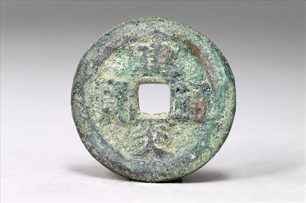 方孔圓錢。「建炎通寶」有篆、楷兩種字體,又有銅、鐵兩種材質。此枚銅錢正面有楷書「建炎通寶」四字,背面無文。