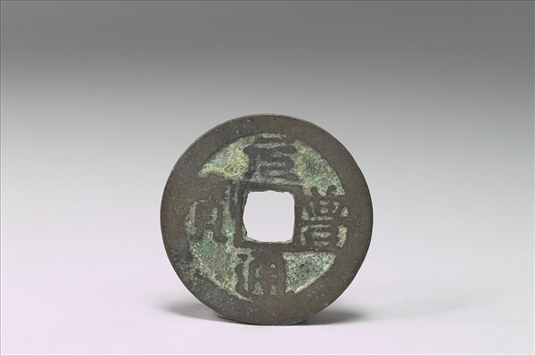 銅質。方孔圓錢,正面有篆書:「元豐通寶」四字,背面無文。