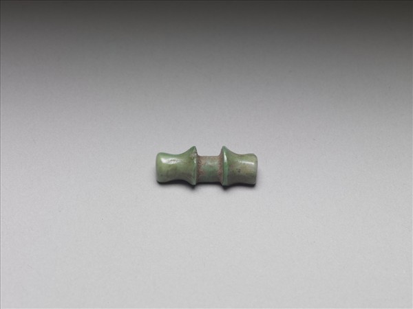 牙製細腰。長柱形,底平,中腰細縮,兩端做馬鞍形。類似細腰曾見於灃西、上村嶺、寶雞、曲阜與洛陽等地的西周至戰國遺址中,通常與車馬器共出,其質材不限於牙或骨,也常見銅製者。
