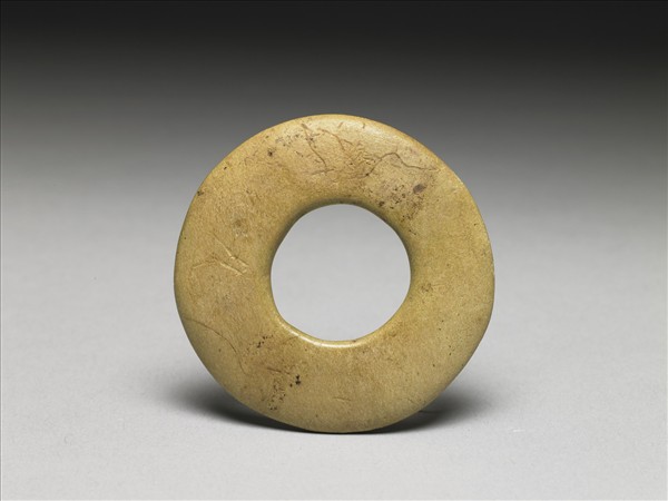 扁平壁形,內外徑皆不規整,徑緣因長期使用而磨得相當潤滑。器內壁顯露骨質之細密小孔,外壁平滑,呈黃綠色。