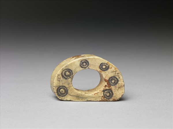 全器取一小節獸骨磨製而成,一面光素,一面陰刻六個重圈同心圓為飾。