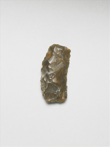 黃褐色石片,全器呈不規則長方形,中體略厚,邊緣扁平,表面多處帶使用痕跡。