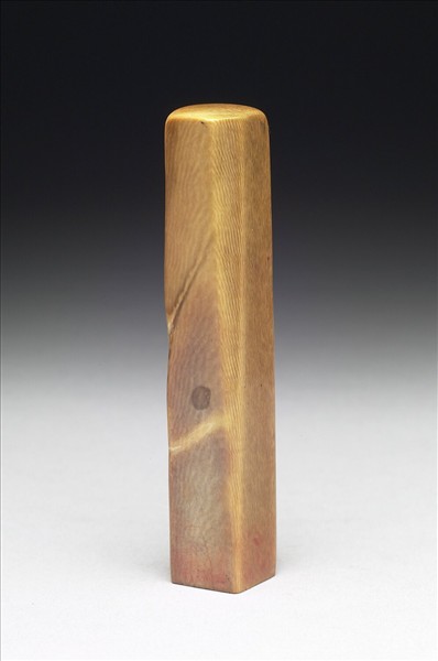 略石化之象牙章,印面正方,色灰黃,天然紋理清楚。印面陰刻二字篆文「張爰」,本印為陳巨來所治。