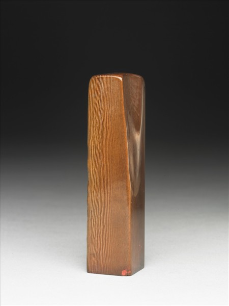 略石化之象牙章,印面正方,色橙紅帶棕,天然紋理清楚。印面陰刻五字篆文「張爰之印信」。據《安持精舍印存》等書,此印為陳巨來先生所治。