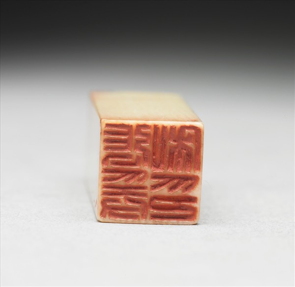 象牙質章,印面正方,色乳白。印面陰刻四字篆文「張爰私印」。據《安持精舍印存》等書,此印為陳巨來先生所治。