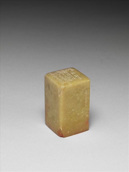 長方柱形青田石印,黃色,外壁光素無紋,印頂面邊角原有傷,上刻:「兆申舊刻:執教基隆時作,乙亥補款。人無恒產而有恒心者,唯士為能。」其中「兆申舊刻」四字為篆字,且字體較大。印面正方,江兆申刻白文:「履恒軒」雙行三篆字,其布白雖採方正的漢印樣式,但不論在線質或是結字上,其精緻與刻意控制的表現較少,反而顯示用筆較輕、而意態輕鬆的書寫,「軒」字採取「二車」的構形,則更增添了本印的古意。而江兆申於民國三十九年(1950)起任教於基隆高中,又《江兆申篆刻集》中隨本印所刊付之黃籤有:「履恒軒。庚寅壬辰間刻于基隆。孟子人無恒產而有恒心者。唯士為能。」庚寅壬辰間為民國三十九年(1950)至民國四十一年(1952),故本印為這段期間的作品。另外,乙亥為民國八十四年(1995),即江兆申補刻邊款之際,已自國立故宮博物院退休數年矣。