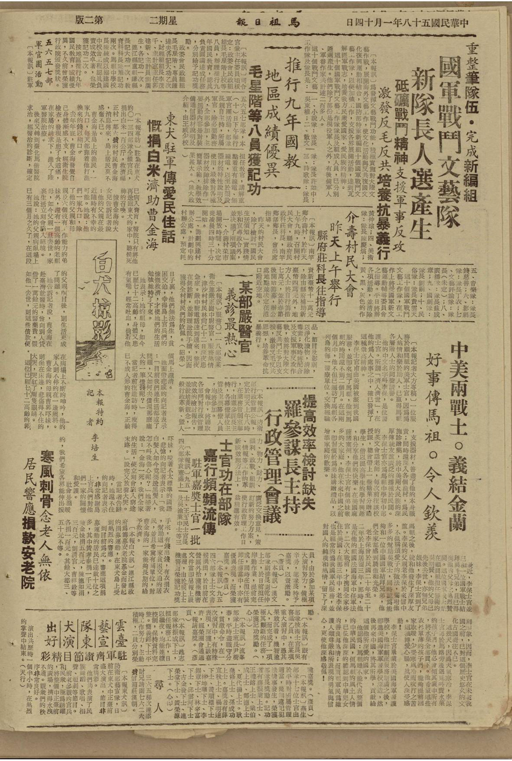 在馬祖的美軍顧問團除了協助馬祖駐軍的軍事作戰、建設與後勤供應外,因早期馬祖地方教育師資的缺乏,美軍顧問團人員也會協助作為馬祖中學的英文師資,其線索透過《馬祖日報》的報導可窺知一二。依據《馬祖日報》民國58年1月14日「中美兩戰士義結金蘭 好事傳馬祖令人欽羡」之新聞,報導提及服務於美軍顧問團的美軍醫護士官李保,從美國調派至馬祖從事醫護服務,於正職上走訪馬祖各島的醫療單位,協助民眾診療與支援相關醫療器材。另也於馬祖中學初中部擔任英文會話老師,至校園授課總會帶上一些糖果贈送學生。